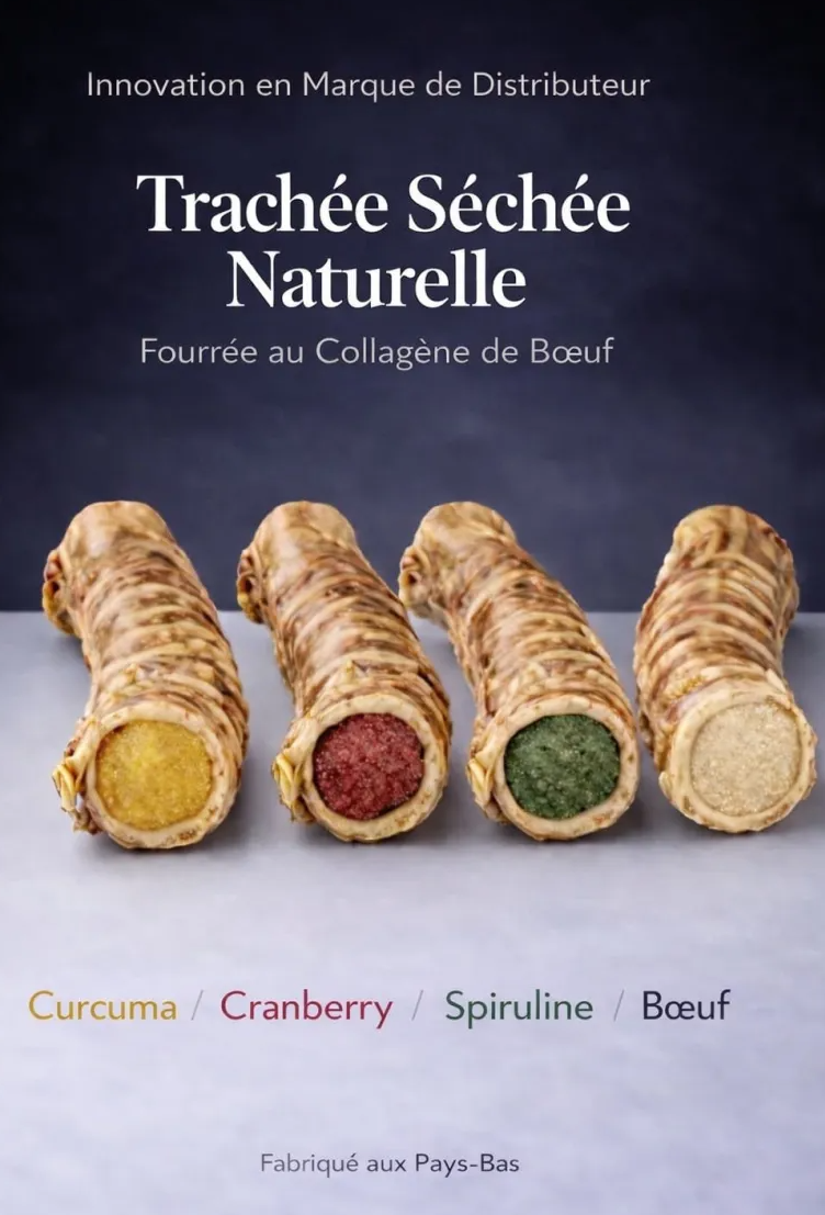 Ingrédients : Trachée de bœuf fourrée avec du collagène de bœuf de haute qualité et de la gélatine de bœuf.